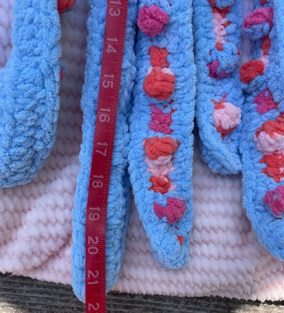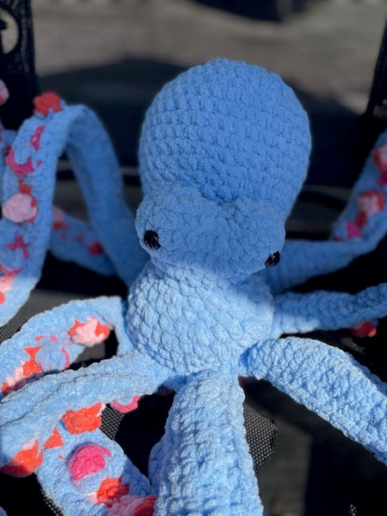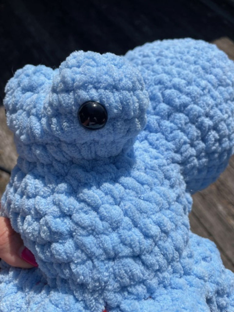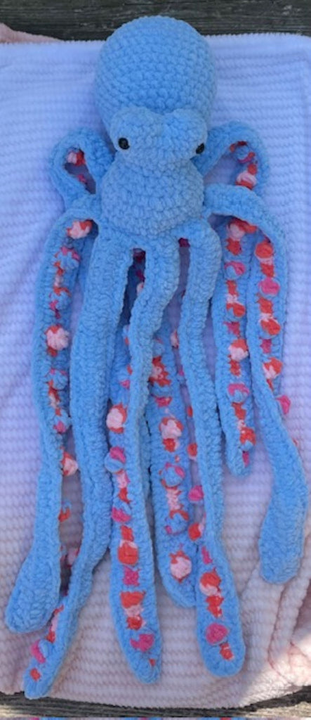 This is a perfect item for anyone who loves under the sea creatures. This large plushy can be made in various colors, which makes personalizing fun. It is a crocheted item, with 20mm safety eyes, as well as poly fil stuffed in its head. The plushy is made with thick blanket yarn. This awesome sea creature would make a great addition to any home decor.